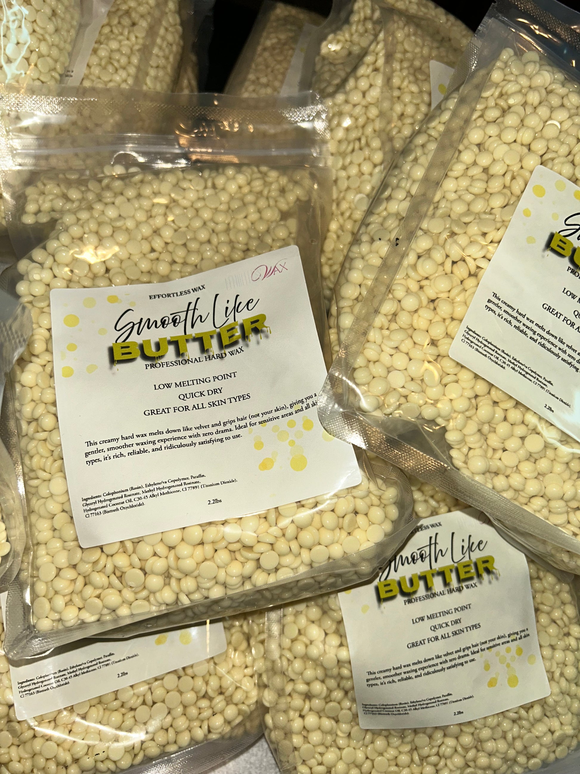 Meet Smooth Like Butter— our signature wax and your new go-to for skin that feels as good as it looks. This creamy hard wax melts down like velvet and grips hair (not your skin), giving you a gentler, smoother waxing experience with zero drama. Ideal for sensitive areas and all skin types, it’s rich, reliable, and ridiculously satisfying to use.